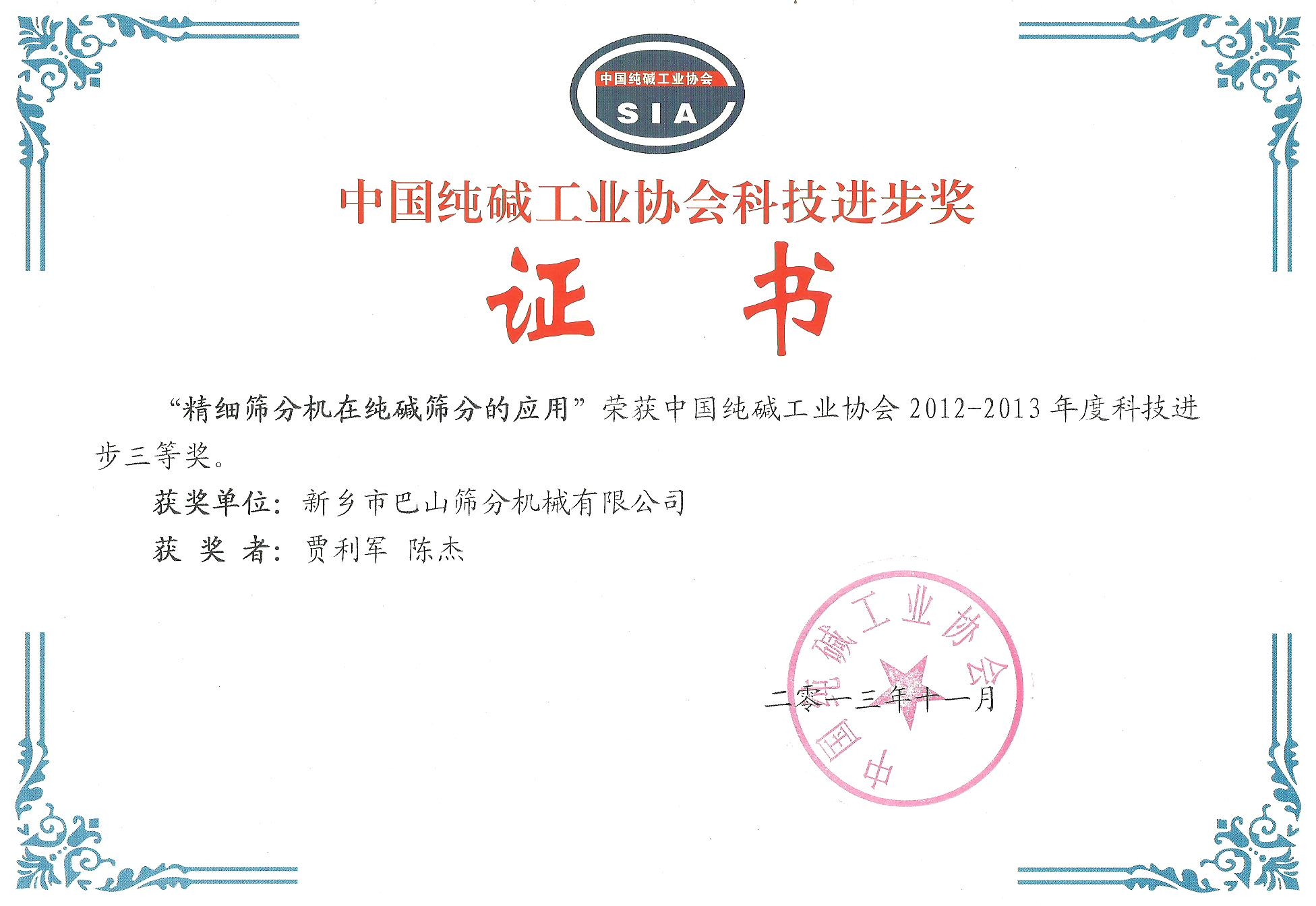純堿行業進步三等獎